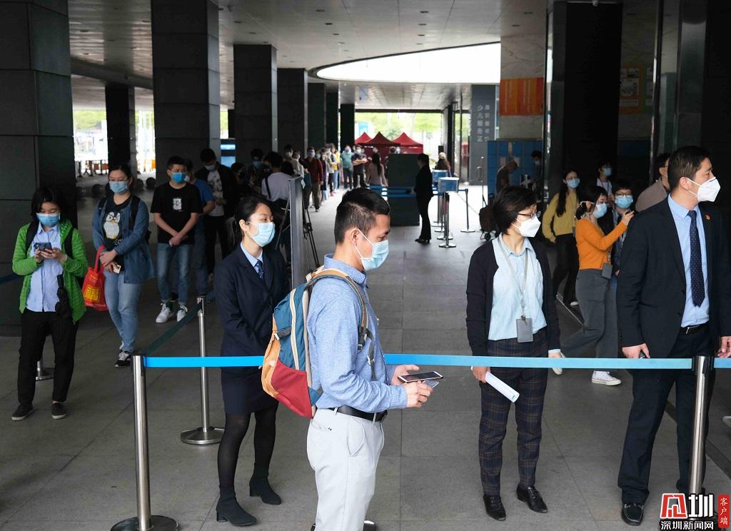 3月24日上午,雖然還未到10點(diǎn)開(kāi)門(mén)時(shí)間,但深圳圖書(shū)館入口處已經(jīng)排著長(zhǎng)龍。