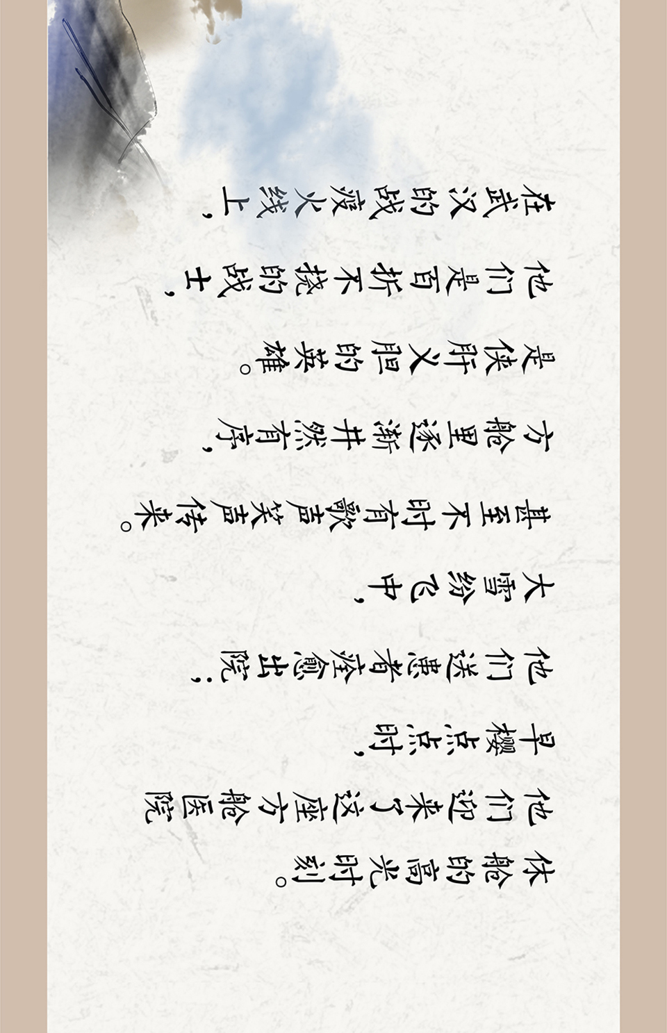 50多天里,他們在武漢東西湖方艙醫(yī)院,在武漢雷神山醫(yī)院,在武漢優(yōu)撫醫(yī)院,在荊州市第一人民醫(yī)院,在荊州監(jiān)利縣人民醫(yī)院和監(jiān)利縣中醫(yī)院同時(shí)間賽跑、與病魔較量,用醫(yī)者仁心,用赤膽無畏,用俠之大義,打贏疫情防控武漢保衛(wèi)戰(zhàn),荊州保衛(wèi)戰(zhàn)。
