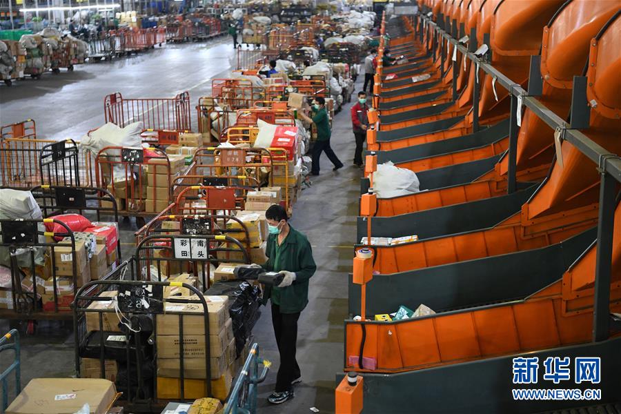 4月1日,在深圳郵件處理中心,工作人員在分揀郵件。據(jù)深圳市郵政管理局介紹,春節(jié)以來,深圳郵政快遞業(yè)累計(jì)向湖北運(yùn)送各類醫(yī)療、防疫物資超2萬批次,累計(jì)為深圳市民配送防疫物資和生活必需品超過2.5億件,為防疫物資和群眾基本生活必需品送達(dá)提供了有力保障。新華社記者 梁旭 攝