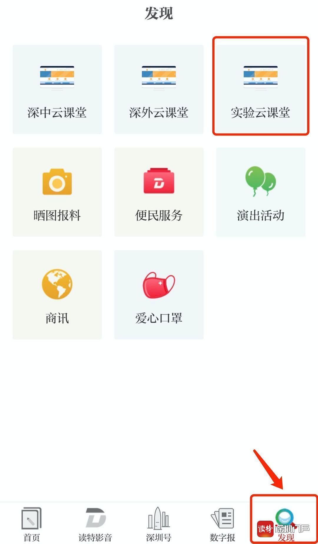 “發(fā)現(xiàn)”頻道也可直接找到“實(shí)驗云課堂”