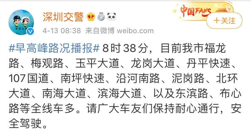 而今早,深圳交警也發(fā)布微博稱早高峰期間,我市多個(gè)路段全線車多,具體路段見(jiàn)下圖↓↓↓