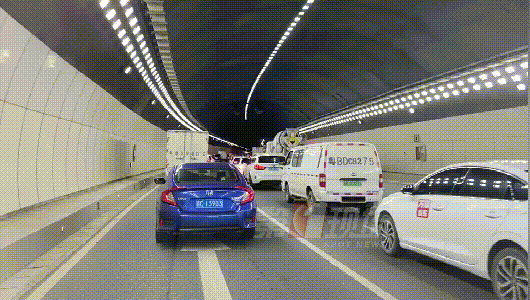 今天上午11點(diǎn)左右,記者來(lái)到丹平快速了解情況,看到往市區(qū)方向出現(xiàn)多車緩行的情況,而在九尾嶺隧道前一百米左右的位置發(fā)生了一起交通事故,造成四車追尾。