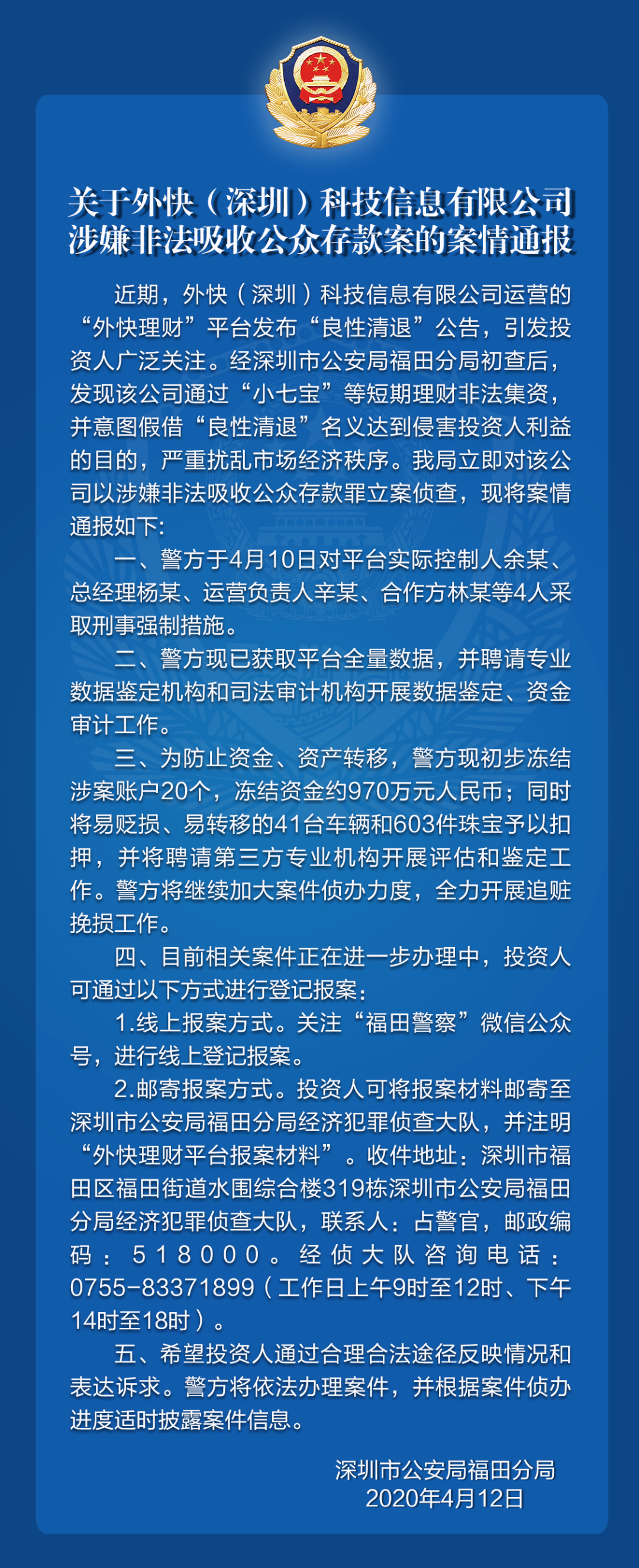 關(guān)于外快(深圳)科技信息有限公司涉嫌非法吸收公眾存款案的案情通報(bào)
