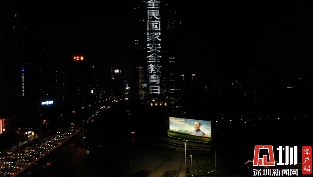 羅湖區(qū)新聞大廈亮出“全民國家安全教育日”字眼。