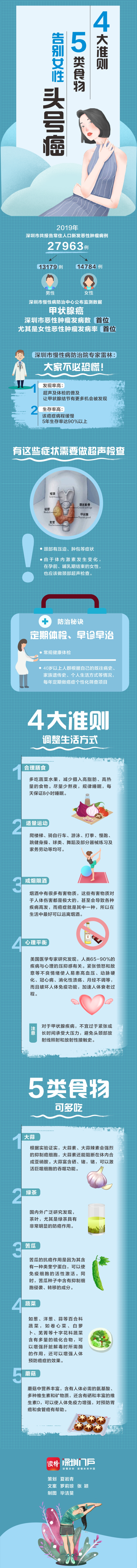 深圳市慢性病防治中心公布的最新腫瘤監(jiān)測(cè)數(shù)據(jù)顯示,2019年,深圳市共報(bào)告常住人口新發(fā)惡性腫瘤病例27963例,甲狀腺癌首次新晉女性“頭號(hào)癌”。