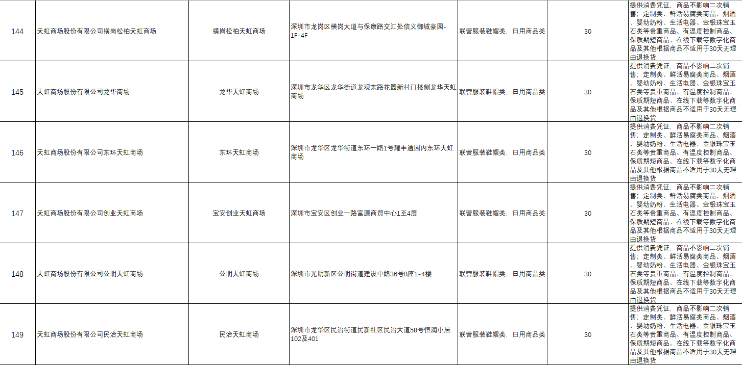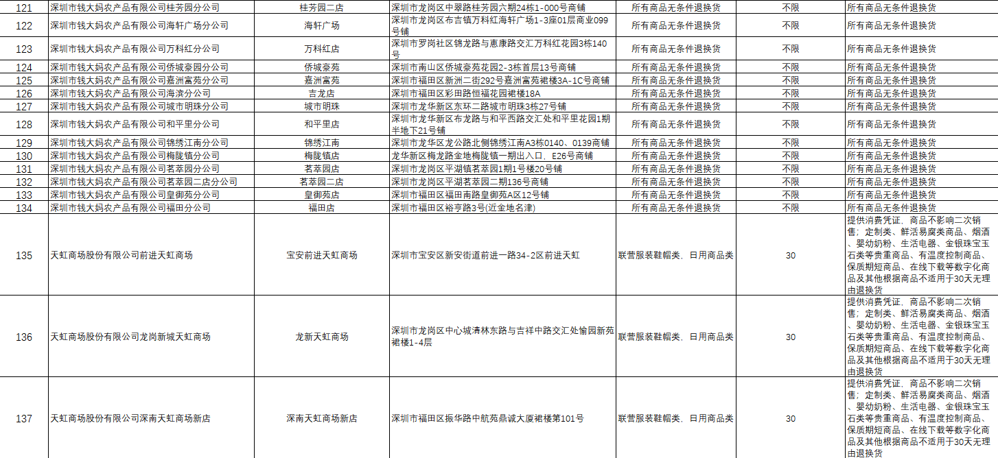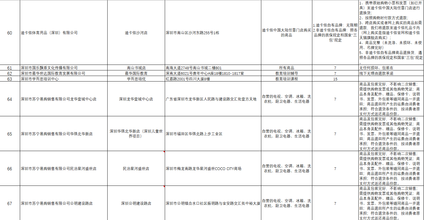 “首批參與的部分企業(yè)承諾遠(yuǎn)高于活動基本要求,退貨期限不止是7天?!笔邢瘯嚓P(guān)負(fù)責(zé)人舉例說,天虹商場聯(lián)營服裝鞋帽類和日用商品類承諾的退貨限期為30天,錢大媽和迪卡儂自有品牌承諾無退貨限期。