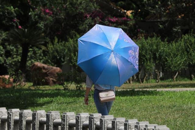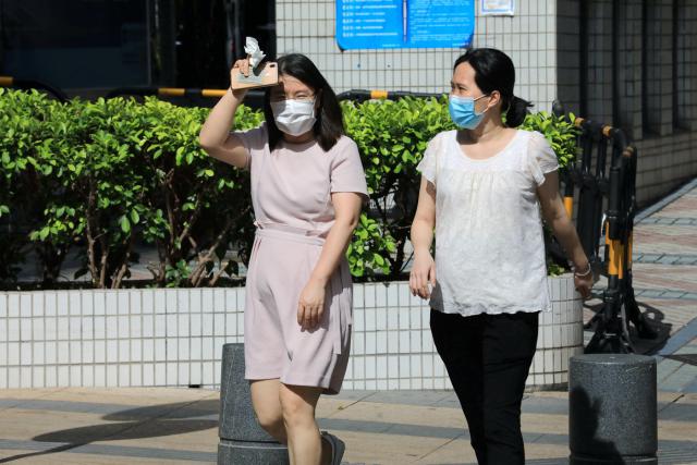 連日來(lái),深圳又悶又熱的夏天模式開(kāi)啟,驕陽(yáng)似火的天氣,最高氣溫達(dá)到33 ℃。在深圳街頭,出行的人們用各種方式抵擋烈日。天氣驟熱,逛公園、海濱棧道的人少了,零零散散的人們尋找陰涼地漫步,打發(fā)悶熱時(shí)光。