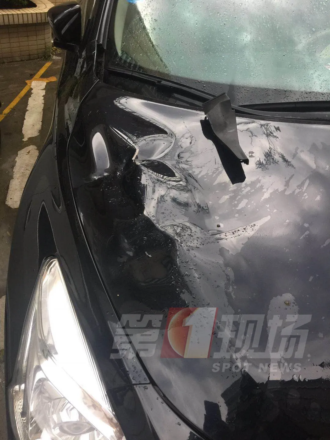 其中,龍華民治春華四季園42棟高層的儲(chǔ)水箱,砸到了樓下藍(lán)色轎車,造成車輛發(fā)動(dòng)機(jī)蓋一處凹陷,多處刮痕。