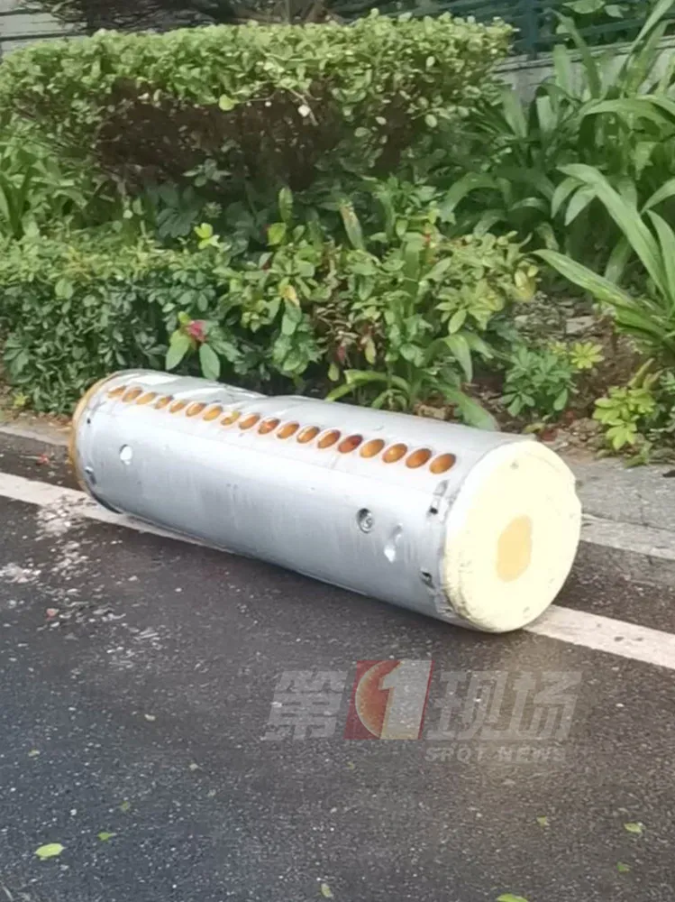 ▲掉落的太陽(yáng)能熱水器儲(chǔ)水箱