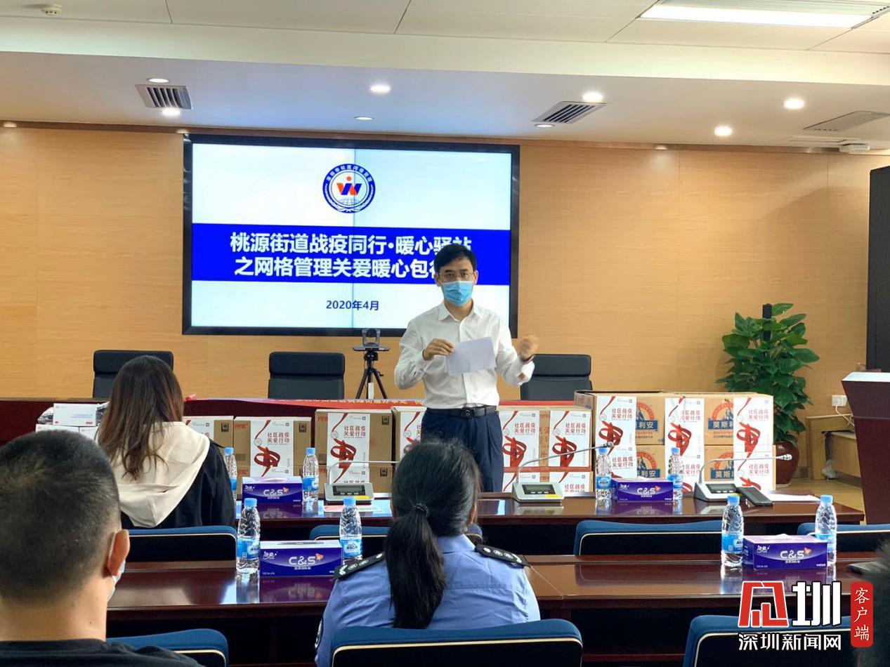 桃源街道網(wǎng)格中心聯(lián)合深圳市關(guān)愛(ài)行動(dòng)公益基金會(huì),對(duì)街道抗疫一線網(wǎng)格員進(jìn)行關(guān)懷慰問(wèn),向他們送去了一批“暖心包”