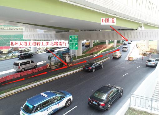 封閉北環(huán)大道主道轉(zhuǎn)上步北路南行路口,僅作應急使用,以減少對北環(huán)主路交通影響。
