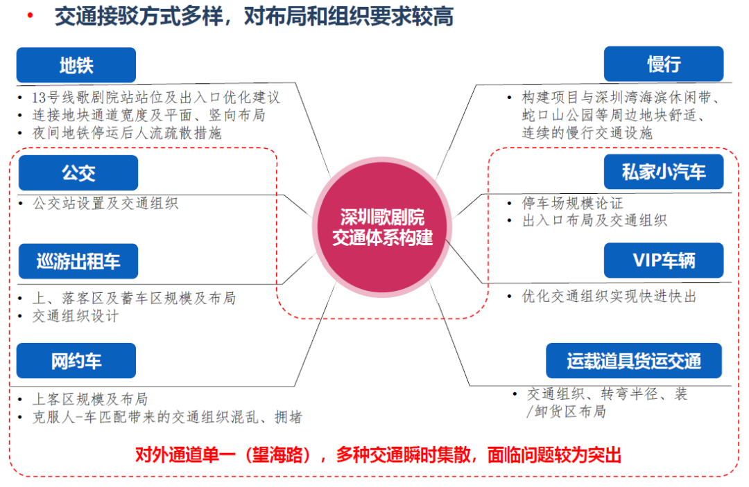 肯定了目前交通組織的總體方案,提出需充分利用地面望海路的交通疏散功能,考慮歌劇院作為地標景點的吸引力,適當增加停車位的彈性及可達性。同時建議市交通運輸局需結(jié)合深圳歌劇院的建設重新對望海路地下快速路的規(guī)劃方案開展研究工作。