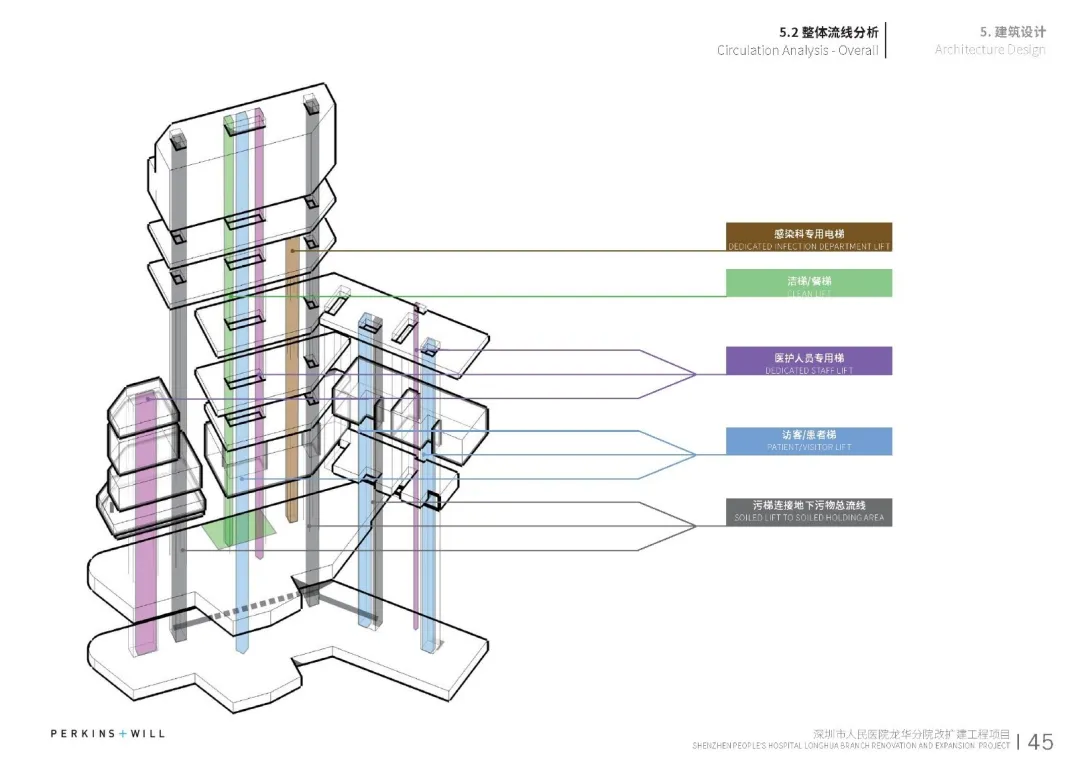 在建筑中通過電梯、物流傳送系統(tǒng)、標識設計、醫(yī)療智能化的專項研究設計,提升就醫(yī)的便捷性和效率。