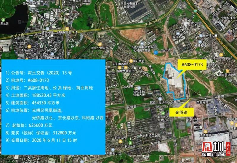 四宗地中,光明A608-0173宗地位于光明區(qū)鳳凰街道光僑路以北、東長路以東、科裕路以西,土地用途為二類居住用地、公共綠地、商業(yè)用地,土地面積為18.85萬平方米,建筑面積為45.43萬平方米。該地建設(shè)住宅類型為公共租賃住房、只租不售的人才住房和普通商品房,初始配建公共租賃住房和只租不售的人才住房各5萬平方米。項(xiàng)目建成后,普通商品住房最高銷售均價(jià)為4.75萬元/平方米(不含室內(nèi)裝修)。