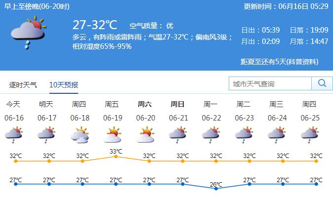 16日氣溫27-32℃,未來兩天局地雷雨多發(fā),出行記得攜帶雨具。