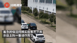 著急的保潔阿姨實在看不下去,親自上陣。