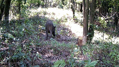 在紅外相機(jī)監(jiān)控中,最活躍的就是野豬了。它們常常成群結(jié)隊(duì)地在山林里撒歡捕食,粗略估計(jì),梧桐山上的野豬不少于50頭,大個(gè)兒的體重估計(jì)有一百多斤。
