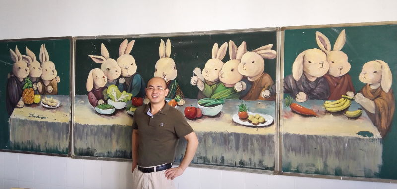 教室后面的版畫,上了深圳的報紙;