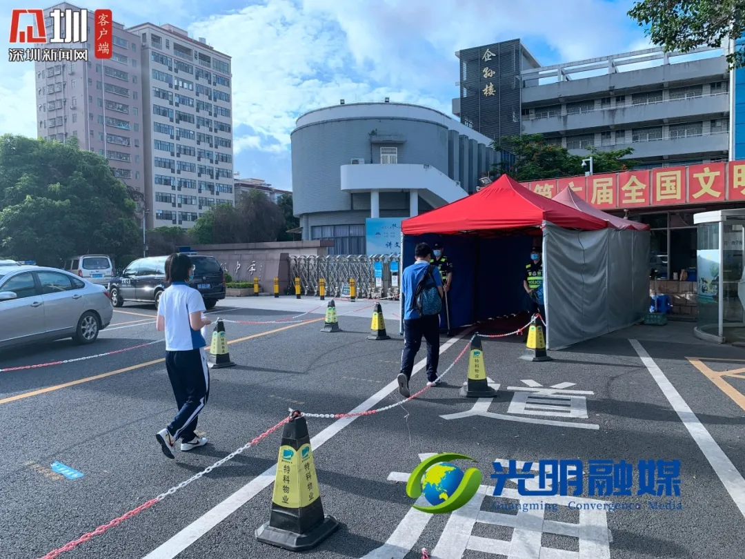 早上七點(diǎn)十五分,記者來(lái)到光明區(qū)高級(jí)中學(xué)考點(diǎn),學(xué)生已經(jīng)開(kāi)始有序走入考場(chǎng)。