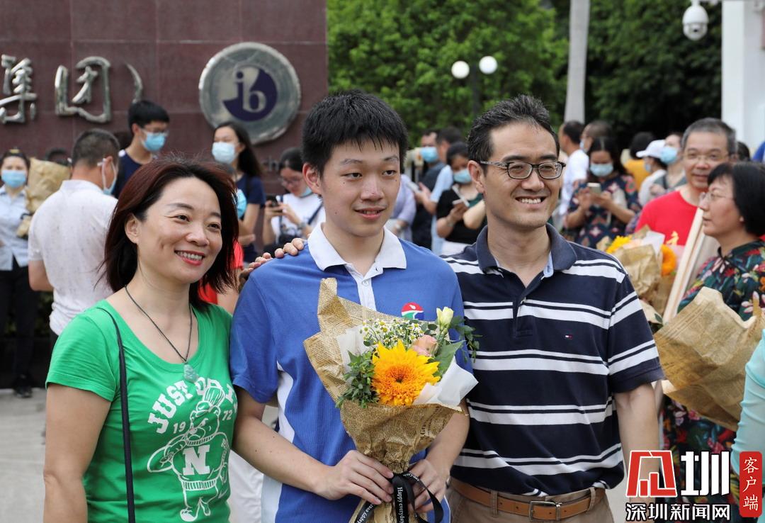深圳高級(jí)中學(xué)考生走出考場(chǎng)收到父母鮮花。