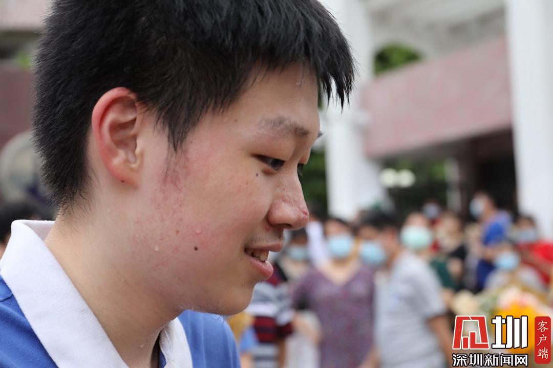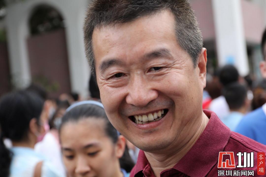 深圳高級(jí)中學(xué)考點(diǎn)外家長(zhǎng)看見(jiàn)孩子笑臉相迎。