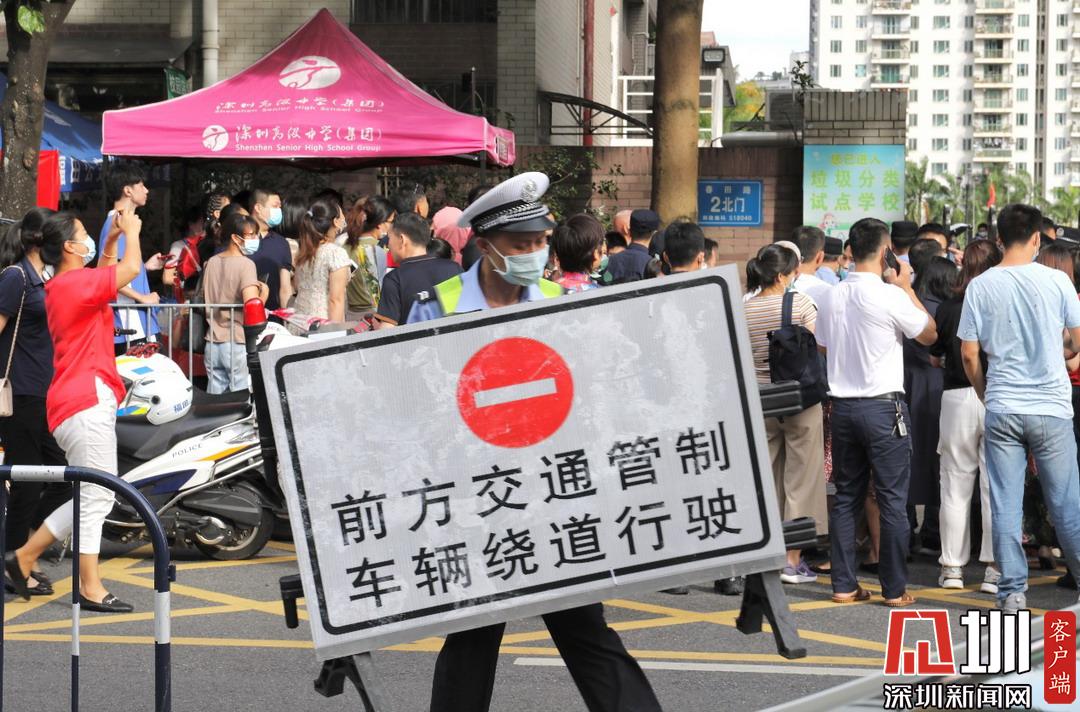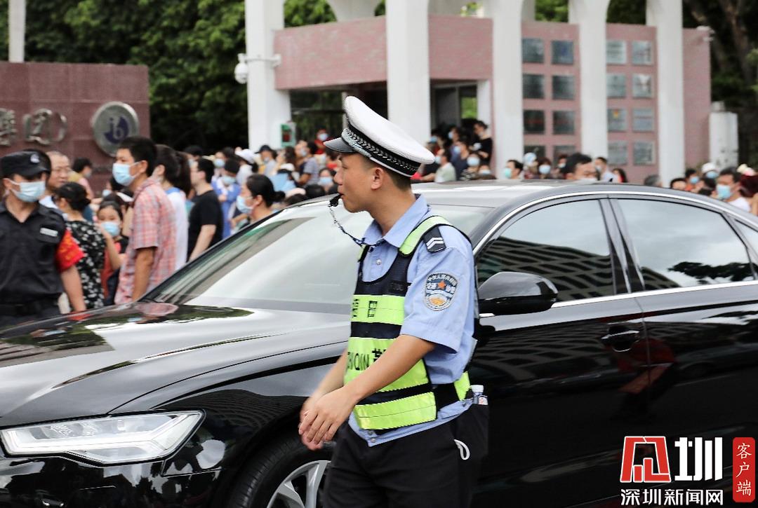 深圳高級(jí)中學(xué)考點(diǎn)外,福田交警加強(qiáng)周邊道路巡邏管控。