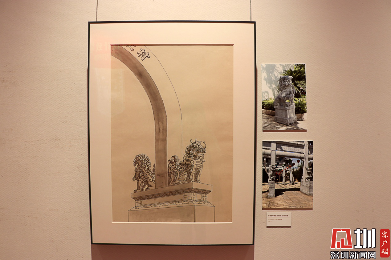 周令釗設(shè)計手稿——深圳民俗文化村入口門柱。