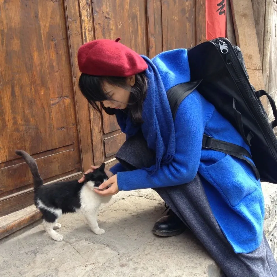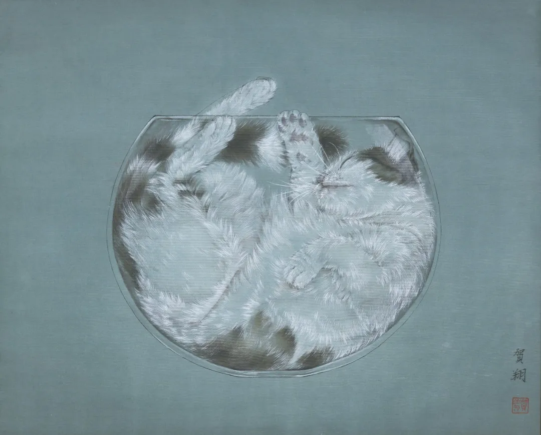 賀翔《我是貓》之一,絹本設色,40×50cm,2017年