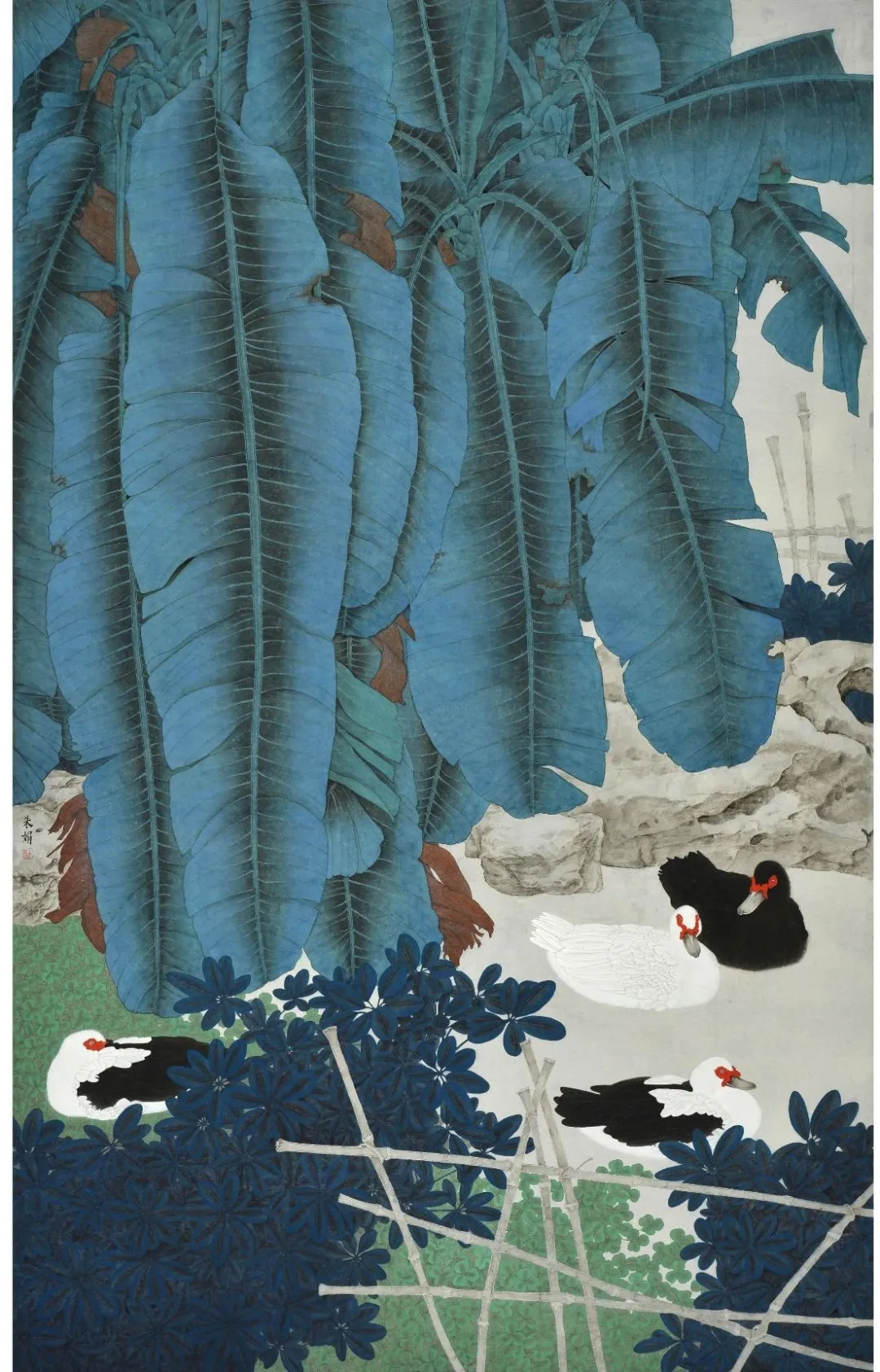 朱娟《中庭日淡芭蕉卷》,紙本設色,127×210cm,2019年
