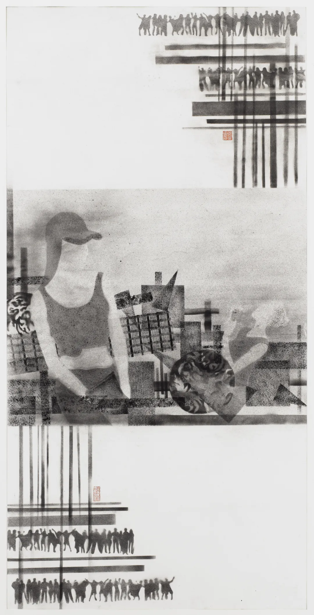 苗瀚文《浮夸背后系列-24》,紙本設色,54×112cm,2017-2019年