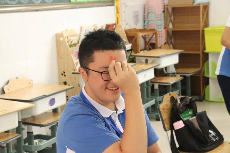 坪山同心外國語學??忌谀X門上貼上“紅色勝利標”,在考場上震懾你的對手。(焦子宇、耿超逸 文 圖)