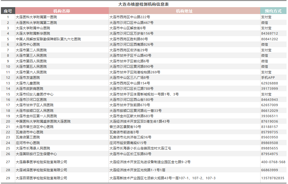 7月24日起,大連市人員原則上實施非必要不離連,確需離連的,須持7日內(nèi)核酸檢測陰性證明;冷藏冷凍肉品、海產(chǎn)品企業(yè)或場所從業(yè)人員盡快實施核酸檢測。大連市對外核酸檢測機構(gòu)現(xiàn)有29家,機構(gòu)地址和預(yù)約方式,市民可登錄大連市衛(wèi)生健康委官方網(wǎng)站進行查詢。