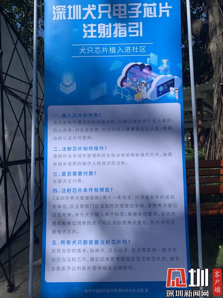 見圳客戶端·深圳新聞網(wǎng)2020年7月26日訊(記者 戰(zhàn)旗)7月26日上午,由深圳市城市管理和綜合執(zhí)法局主辦,福田區(qū)城管和綜合執(zhí)法局承辦的全市首場“文明養(yǎng)犬·芯連心”犬只芯片植入進社區(qū)活動在福田區(qū)景蜜社區(qū)公園開展。記者現(xiàn)場獲悉,2020年年底前,深圳將實現(xiàn)犬只芯片管理全覆蓋,目前,全市各區(qū)都在逐步推進犬只芯片植入工作,福田區(qū)、龍崗區(qū)、龍華區(qū)、羅湖區(qū)、大鵬新區(qū)已與100家寵物醫(yī)院正式簽訂了《犬只芯片植入委托服務》。