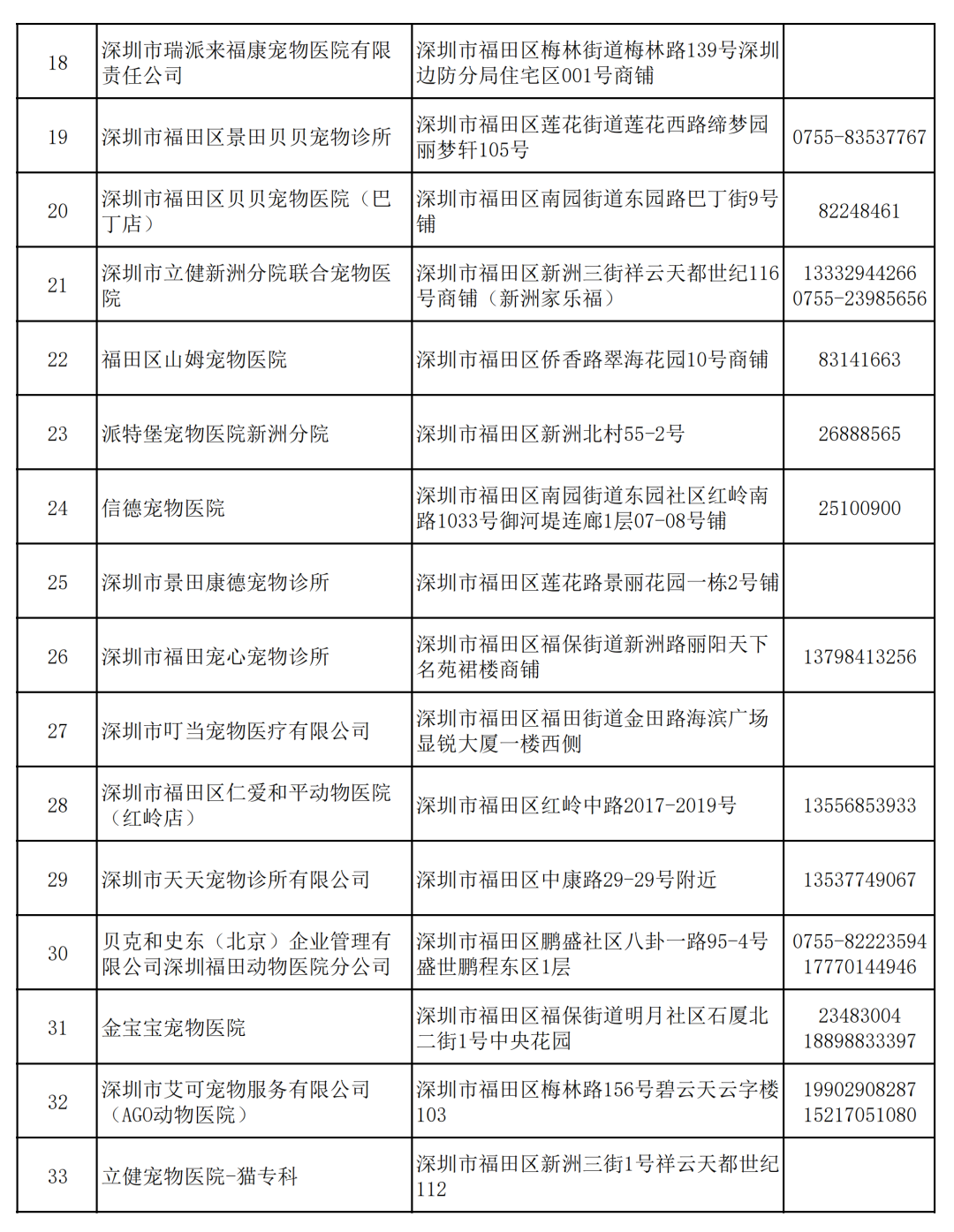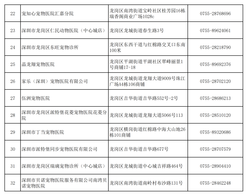 已與各區(qū)簽訂了《犬只芯片植入委托服務》的寵物醫(yī)院信息。
