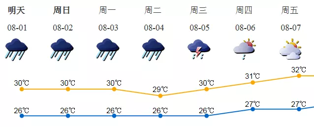 7月31日至8月2日我市有暴雨,東部、南部有大暴雨,沿海、高地和海區(qū)最大陣風(fēng)8-10級。3-5日仍有暴雨,局部大暴雨。