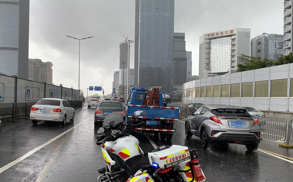 深圳交警立即引導(dǎo)兩車轉(zhuǎn)移到不影響交通路段,同時提醒過往車輛注意避讓。目前,涉事司機(jī)已報(bào)保險處理。