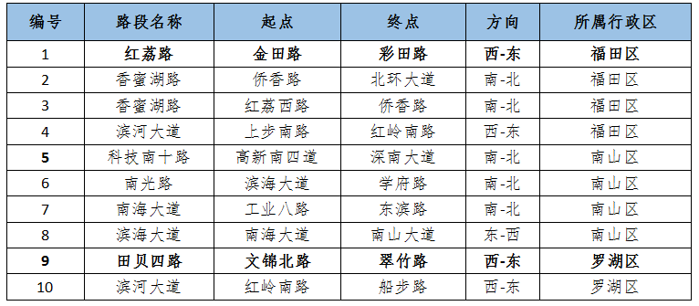 預(yù)計臺風(fēng)季工作日晚高峰時段十大易堵路段主要集中在福田、南山、羅湖區(qū),其中,福田區(qū)紅荔路(金田路-彩田路)、羅湖區(qū)田貝四路(文錦北路-翠竹路)等路段受降雨天氣影響較大,預(yù)計晚高峰時段路段通行時長較普通工作日多花費30%-60%,道路運(yùn)行有所惡化。
