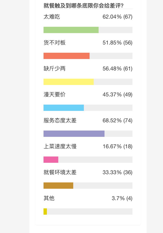 用餐后做出評(píng)價(jià),是消費(fèi)者的基本權(quán)利。針對(duì)“就餐差評(píng)”的問(wèn)題,深圳新聞網(wǎng)昨天發(fā)起了網(wǎng)友投票。結(jié)果,有69.52%的網(wǎng)友表示,他們?cè)?jīng)在用餐后給過(guò)差評(píng)。在給出差評(píng)的原因中,“服務(wù)態(tài)度差”、“太難吃”高居前兩名。對(duì)商家提出中肯的批評(píng)與監(jiān)督,是每個(gè)消費(fèi)者享有的基本權(quán)利,中肯的評(píng)價(jià)不僅是商家進(jìn)步的動(dòng)力,也讓更多網(wǎng)友能夠快速篩選定位商家,從而促進(jìn)行業(yè)的良性發(fā)展。
