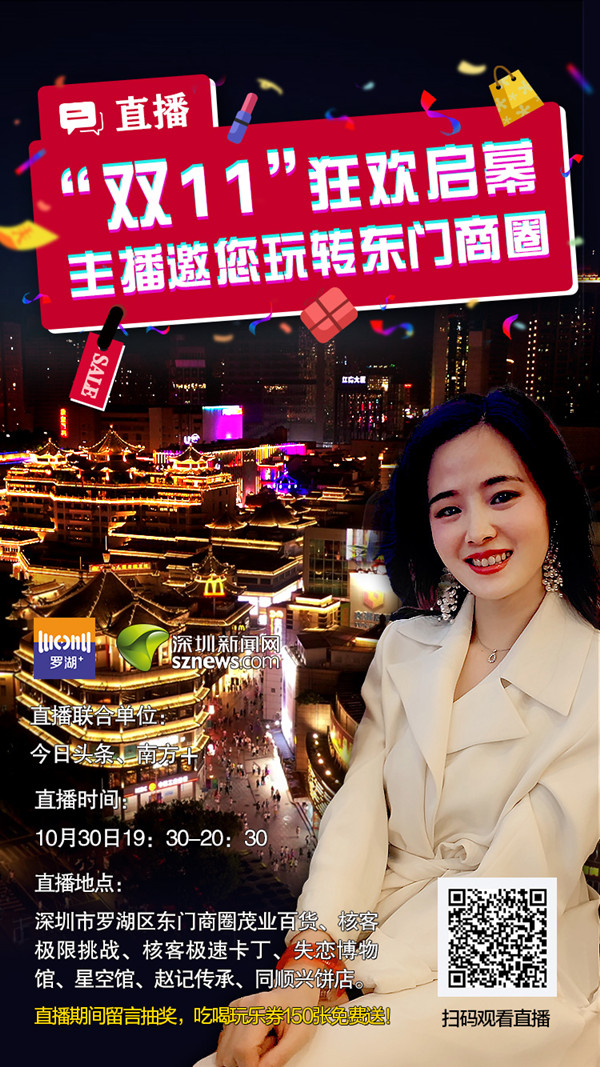深圳新聞網(wǎng)訊(見圳客戶端、深圳新聞網(wǎng)記者 李慧 劉晨)提前探秘經(jīng)典活動(dòng)“68小時(shí)不打烊”熱潮、體驗(yàn)全亞洲最長(zhǎng)的室內(nèi)索道、打卡失戀博物館、7D星空魔幻藝術(shù)館、走進(jìn)手沖姜撞奶的原創(chuàng)品牌糖水店、品嘗深圳特產(chǎn)……10月30日(本周五)晚上7:30-8:30,由深圳新聞網(wǎng)聯(lián)合深圳市羅湖區(qū)融媒體中心共同打造,聯(lián)合今日頭條、南方+直播平臺(tái),為市民開啟東門商圈狂歡預(yù)熱,解鎖“雙十一”嗨購方式,并在直播時(shí)段每隔20分鐘抽取一次幸運(yùn)網(wǎng)友,發(fā)放免費(fèi)150張吃喝玩樂禮品券。