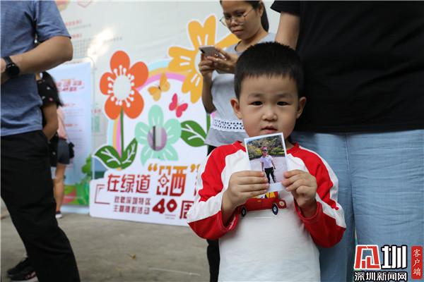 “我是在‘i羅湖’公眾號(hào)上看到消息,說(shuō)是周日梧桐綠道會(huì)舉辦攝影活動(dòng),于是帶著家人來(lái)游玩拍照”。羅湖市民周先生說(shuō)。這里有深圳和綠道元素的標(biāo)語(yǔ)、頭箍、合影異形牌等道具,拍照打卡很有紀(jì)念意義,而且還有專業(yè)的攝影師和智能照片打印機(jī)。“我們一家人很久沒有合影了”拿著剛打印出來(lái)的照片,周先生看著家人笑得很開心。