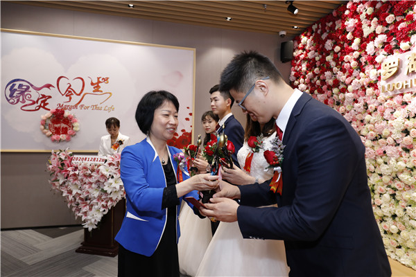 見(jiàn)圳客戶(hù)端·深圳新聞網(wǎng)12月12日訊(記者 李慧 通訊員 黎少忠 黃穎怡)“1212,要愛(ài)要愛(ài)!我們結(jié)婚啦!”,“雙十二”對(duì)大部分人來(lái)說(shuō)是一個(gè)購(gòu)物的好日子,但對(duì)打算步入婚姻的新人們來(lái)說(shuō),卻是一個(gè)不可錯(cuò)過(guò)的登記好時(shí)機(jī)。12月12日,羅湖區(qū)婚姻登記處四處洋溢著歡樂(lè)的笑聲,12對(duì)新人在滿(mǎn)是玫瑰花的婚姻登記處中舉行集體結(jié)婚儀式。據(jù)悉,這也是疫情以來(lái)羅湖區(qū)首場(chǎng)結(jié)婚登記集體頒證儀式。