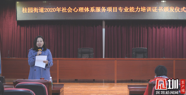 頒證儀式上,林宣妤對(duì)街道持證的心理服務(wù)人員表示祝賀,并提出殷切期望,希望持證人員所在社區(qū)要加強(qiáng)資源整合“盤(pán)活存量”,把購(gòu)買(mǎi)服務(wù)與開(kāi)拓專(zhuān)業(yè)志愿服務(wù)相結(jié)合,把挖掘暨有平臺(tái)、人才和培育本土化的心理服務(wù)隊(duì)伍相結(jié)合,把轄區(qū)內(nèi)現(xiàn)有的心理咨詢室、心理咨詢師、心理服務(wù)熱線、心理服務(wù)陣地等資源加以整合,構(gòu)建跨部門(mén)、跨領(lǐng)域的心理協(xié)作體系。同時(shí)希望持證人員在工作中能夠完成去粗取精,揚(yáng)長(zhǎng)抑短,去劣存優(yōu)的動(dòng)態(tài)過(guò)程,將社會(huì)心理服務(wù)體系建設(shè)工作抓早抓好,落實(shí)到位。張小梨認(rèn)為桂園街道黨工委辦事處拿出人力物力財(cái)力對(duì)參與社會(huì)心理服務(wù)的基層干部進(jìn)行心理學(xué)專(zhuān)業(yè)知識(shí)系統(tǒng)培訓(xùn),可以說(shuō)是走在了前列,探索出社會(huì)心理助力社會(huì)治理現(xiàn)代化建設(shè)的“桂園模式”,為深圳社會(huì)主義先行示范區(qū)建設(shè)在社會(huì)治理與社會(huì)心理服務(wù)方面提供了鮮活案例,值得點(diǎn)贊和推廣,也為相關(guān)學(xué)者在研究上提供了范例。