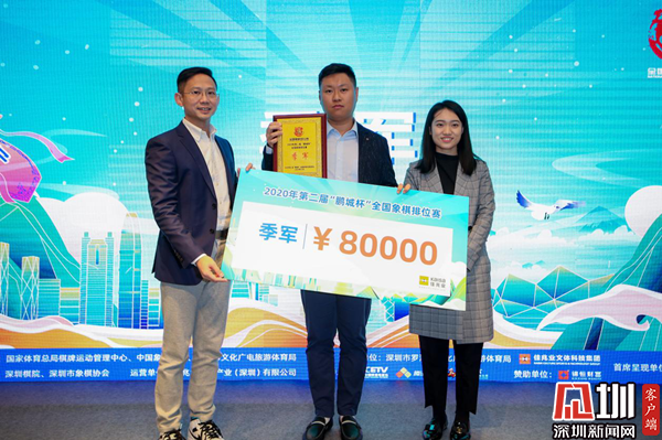 12月31日下午,由佳兆業(yè)呈現(xiàn)的第二屆“鵬城杯”全國象棋排位賽在深圳市羅湖區(qū)陽光酒店舉行頒獎儀式。王天一獲得冠軍以及30萬元的獎金,趙鑫鑫、孟辰分別獲得了亞軍、季軍。