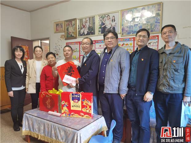 隨后,陳鵬、藍(lán)岸率領(lǐng)報業(yè)集團(tuán)紀(jì)檢監(jiān)察室黨支部、深圳新聞網(wǎng)黨總支部黨員代表,在清水河街道黨工委副書記劉曉春、街道四級調(diào)研員陳小龍、梅園社區(qū)黨委書記曾建輝、副書記陳秋珊等人的陪同下,對梅園社區(qū)抗疫先鋒黨員、單親婦女、困難居民、殘疾人士進(jìn)行分組探訪慰問并送上新春祝福。大家?guī)厦篮玫淖8?、喜慶的春聯(lián)、慰問金、臘腸等慰問品,分四組慰問走訪。