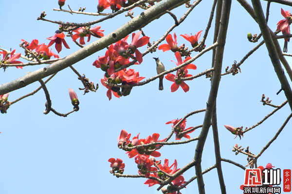 走進洪湖公園,又大又紅的木棉花如火焰一般迎風(fēng)綻放,團團簇簇的掛在樹梢上,春天的氣息撲面而來,給洪湖公園增添了一道美麗的風(fēng)景線。