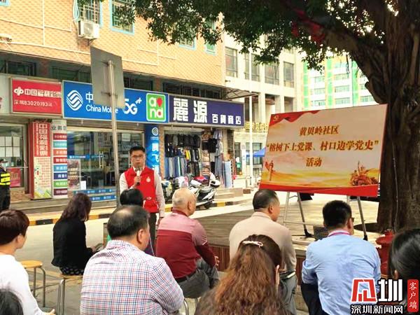 見圳客戶端·深圳新聞網(wǎng)3月12日訊(記者 郭含笑 通訊員 潘霈穎)為深入學(xué)習(xí)貫徹習(xí)近平總書記在黨史學(xué)習(xí)教育動(dòng)員大會(huì)上的重要講話精神,全面貫徹落實(shí)黨中央、省委、市委、區(qū)委關(guān)于黨史學(xué)習(xí)教育的決策部署,深圳市羅湖區(qū)黃貝街道黃貝嶺社區(qū)于3月12日下午開展“榕樹下講黨課、村口邊學(xué)黨史”主題黨日活動(dòng)。黃貝街道黨工委副書記、辦事處主任鐘遠(yuǎn)鋒以及轄區(qū)黨員、居民共30余人參與此次活動(dòng)。