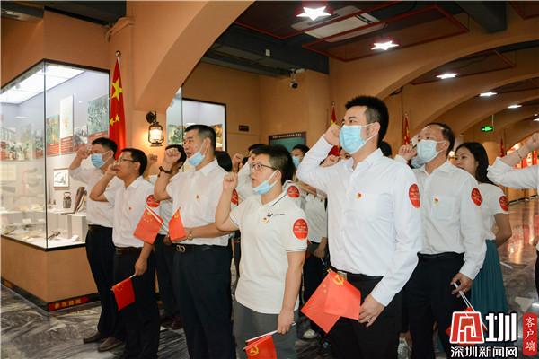 參觀活動結(jié)束后,全體成員進(jìn)行了重溫入黨誓詞環(huán)節(jié)。在鮮紅的黨旗下,黨員們舉起右拳,在羅湖區(qū)委宣傳部二級調(diào)研員李文威的帶領(lǐng)下莊嚴(yán)宣誓,大家仿佛又看到了自己第一次站在莊嚴(yán)的黨旗下宣誓的樣子:“我志愿加入中國共產(chǎn)黨,擁護(hù)黨的綱領(lǐng),遵守黨的章程……”一聲聲鏗鏘有力的入黨誓詞在博物館中回響。