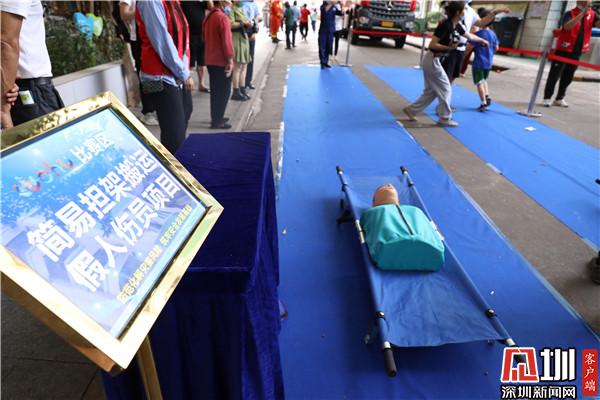活動現(xiàn)場,宣傳教育區(qū)、技能展示區(qū)、互動體驗區(qū)、趣味比賽區(qū)等人頭攢動,不時傳來陣陣贊嘆聲、歡呼聲。來自羅湖區(qū)森防大隊、消防救援大隊的隊員們,向群眾講解無人機、液壓切割機、消防機器人等救援設備、裝備,演示森防油鋸速切木頭、風力滅火機吹磚頭等等比武項目;居民體驗使用干粉滅火器;美國心臟協(xié)會AHA導師向居民示范教學心肺復蘇急救。趣味比賽區(qū)專門設置了防汛沙袋搬運、疊放競速、簡易擔架搬運假人傷員、4*20M消防水帶接力等獨具防災減災特色的趣味比賽項目,吸引了眾多社區(qū)居民積極參與。