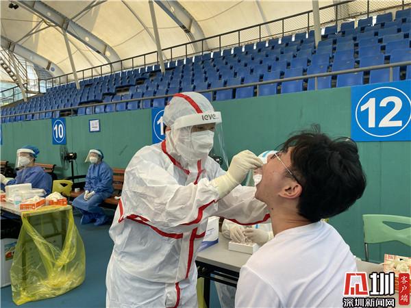 “根據(jù)當(dāng)前疫情防控工作要求,結(jié)合羅湖區(qū)實(shí)際情況,我們?cè)?8日啟用去體育館這個(gè)臨時(shí)采樣點(diǎn),現(xiàn)場(chǎng)我們可以看到整個(gè)采樣工作是很有秩序的,因?yàn)槲覀冊(cè)诿總€(gè)時(shí)間段安排不同的人群進(jìn)行采樣,所以不會(huì)出現(xiàn)排隊(duì)擁擠等情況。”羅湖區(qū)衛(wèi)健局公共衛(wèi)生和職業(yè)衛(wèi)生科科長(zhǎng)江正談道,羅湖成立了一支擁有1200人的平戰(zhàn)結(jié)合應(yīng)急采樣隊(duì),隨時(shí)為疫情防控工作做好備戰(zhàn)準(zhǔn)備,一旦有需要,隨時(shí)就可以投入戰(zhàn)斗?!艾F(xiàn)在這個(gè)臨時(shí)檢測(cè)點(diǎn)每天的采樣量大概在5000個(gè)左右,我們很有信心,能夠打贏這場(chǎng)戰(zhàn)‘疫’?!苯f(shuō)。