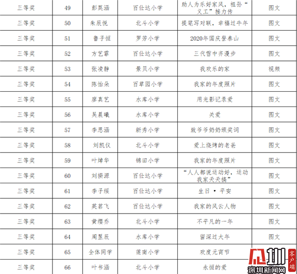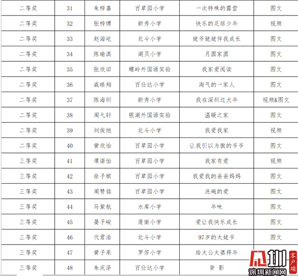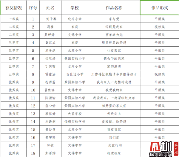 6月1日,羅湖區(qū)“家庭文明公益廣告”及“我家年度故事”征集活動(dòng)獲獎(jiǎng)名單公布,其中,18個(gè)“家庭文明公益廣告”和74個(gè)“年度故事”圖文作品獲獎(jiǎng)。